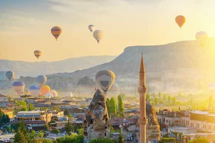 Then, as the sun begins to rise, float to an altitude of about 1,000 feet (300 meters) for extraordinary 360-degree views of Cappadocia. The wind will transport you across the valleys and mountains for about 45 min. to 1-hour, depending on the weather. Marvel at the unique rocks and caves of the region from a bird’s eye perspective.