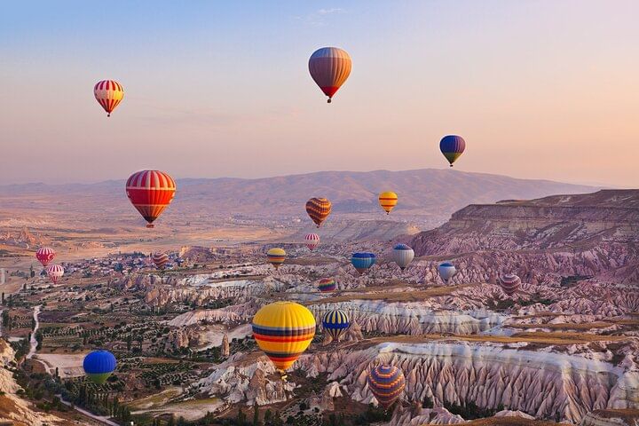 Enjoy a thrilling hot air balloon flight over the fairy chimneys and rock cut churches and houses of Cappadocia, with transfers from your hotel and a pre-flight breakfast on arrival at the launch site.