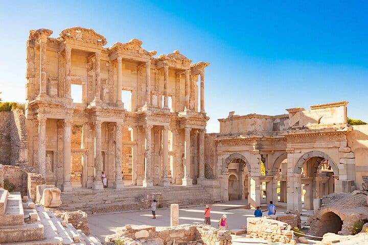 After disembarking, meet your professional guide at the Kuşadası cruise port or your hotel and travel in a comfortable, air-conditioned vehicle. Explore the Ancient City of Ephesus, one of the best-preserved classical cities in the Mediterranean, walking along marble streets to see highlights such as the Library of Celsus, the Grand Theater, and Roman baths, brought to life through your guide’s engaging commentary.